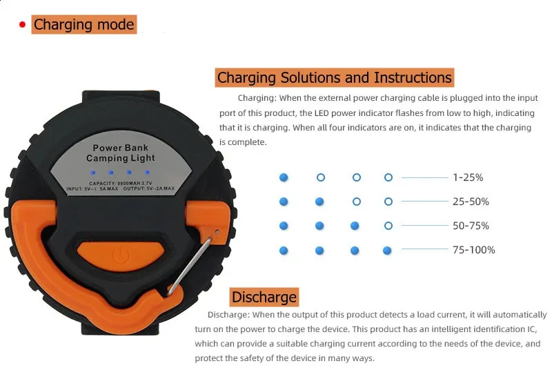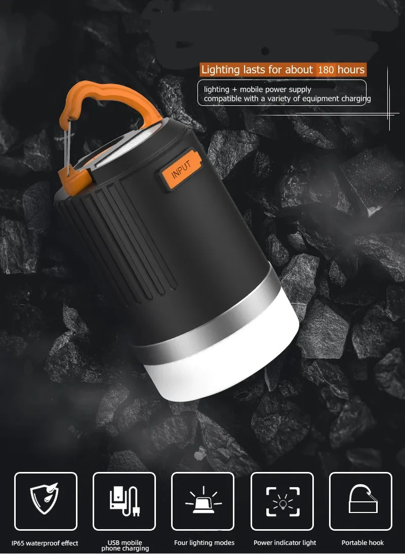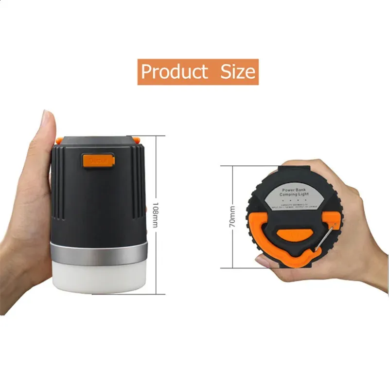 Light Source: LED Bulbs Power Source: Dry Battery Occasion: Outdoor Recreation Use: Outdoor camping Nighttime fishing Color: Black Size: 10.8x7cm Features: Portable Camping Light Model Number: 10400mAh camping light Category: Portable Lanterns  ..