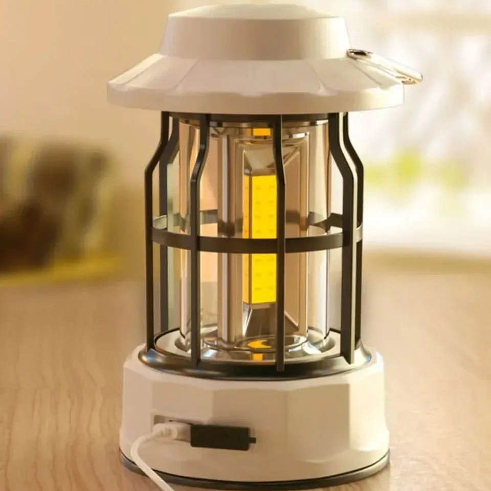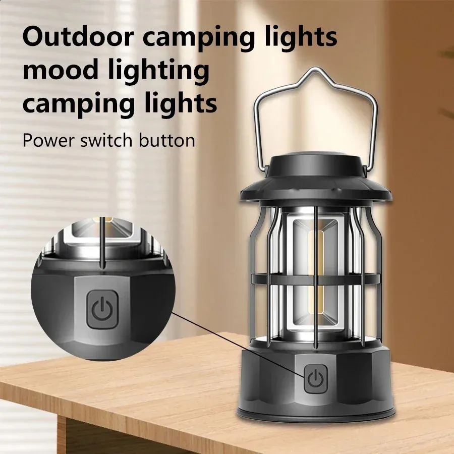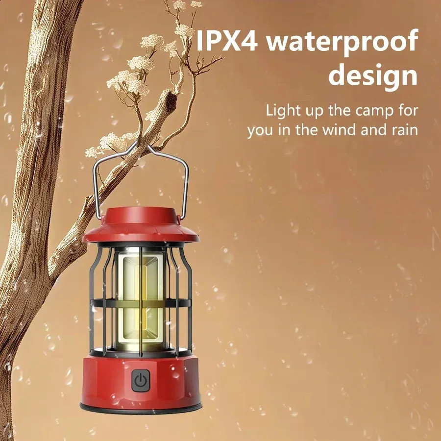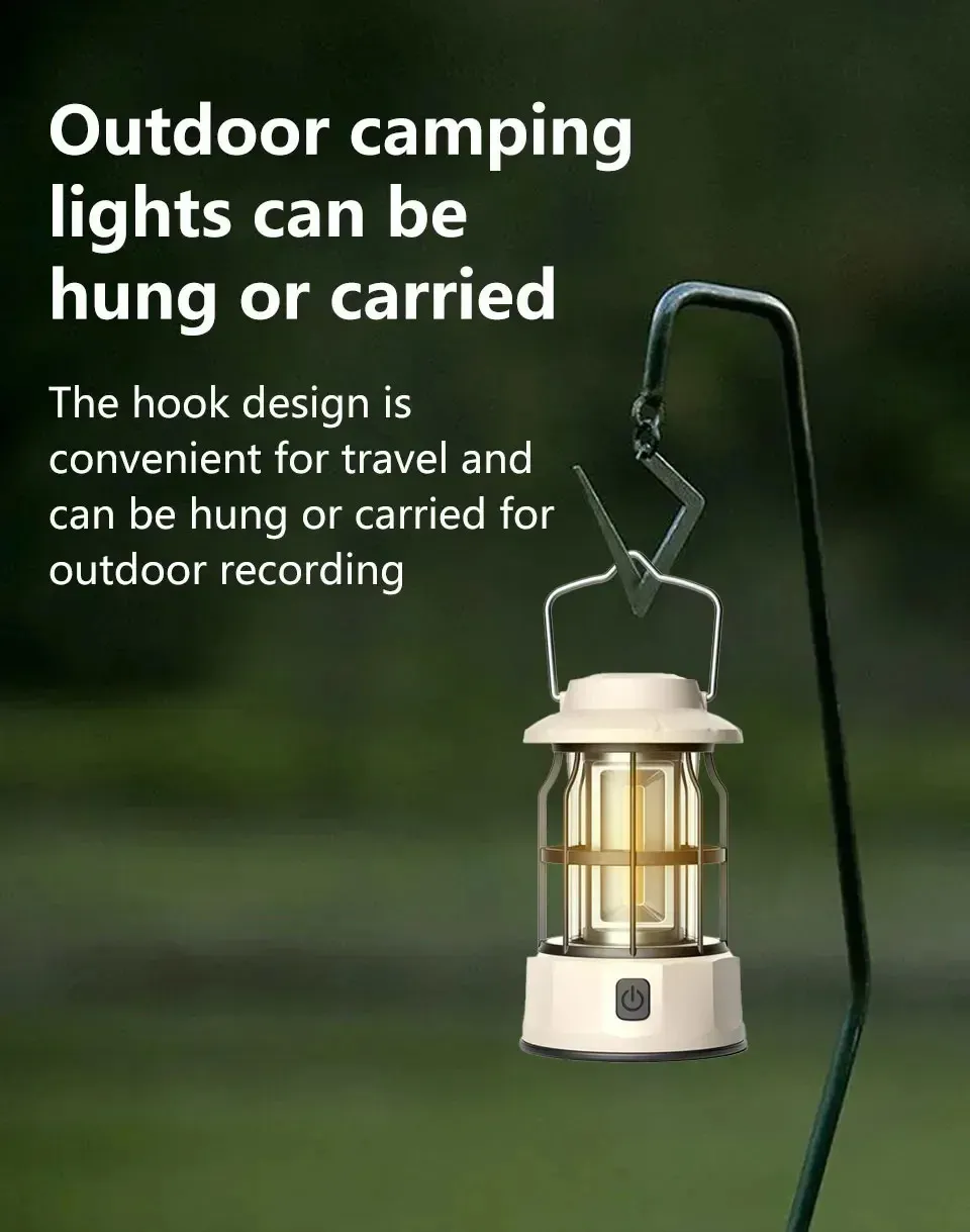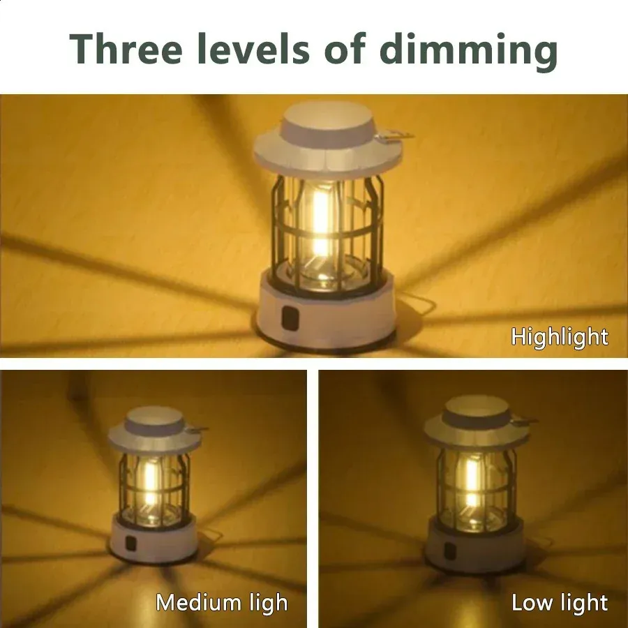 Vintage Rechargeable Camping Lantern Stepless Dimming COB Portable Waterproof Hanging Lampfor Hiking Fishing Climbing Emergency
